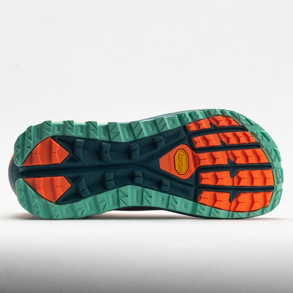 Outsole: Vibram® Megagrip high-performance rubber offers excellent grip on wet and dry surfaces. TrailClaw™ canted lugs provide extra traction beneath the metatarsals.